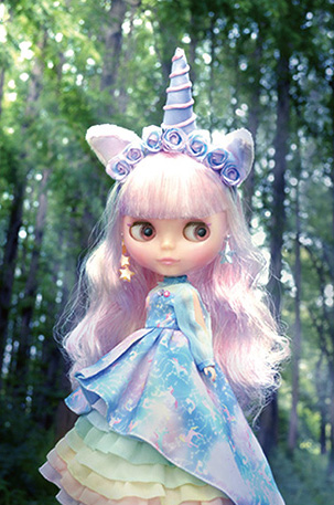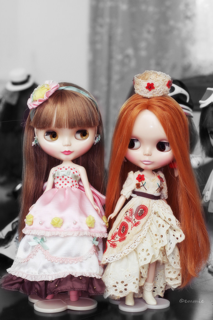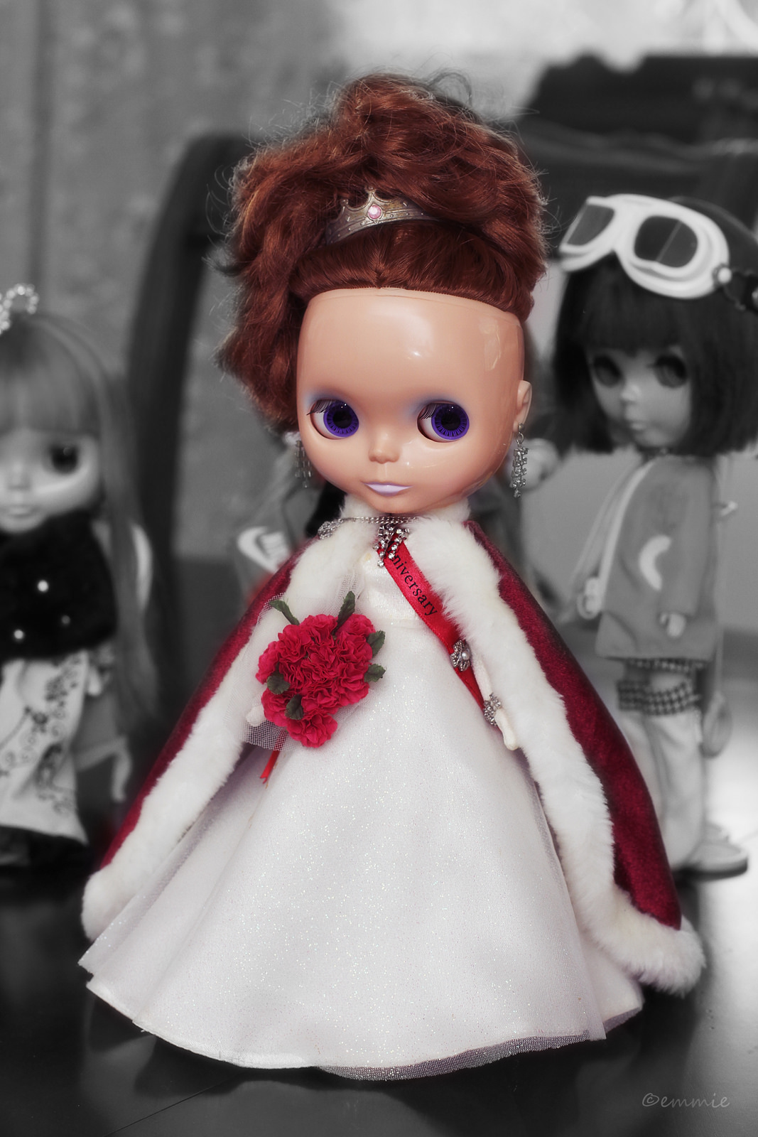 This gallery includes beautiful photos taken by Emmie Ame that showcase anniversary Blythe dolls in parts of their stock outfits. Other images are from Blythedoll and Blythopia.