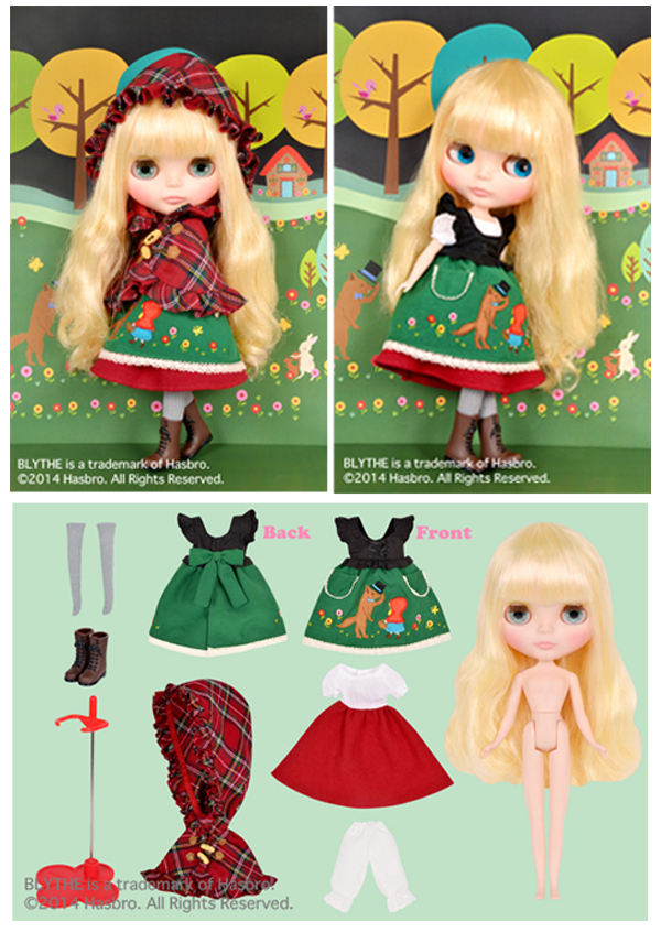 Set Includes: Doll, dress, apron dress, cape, underpants, boots, socks, and stand.