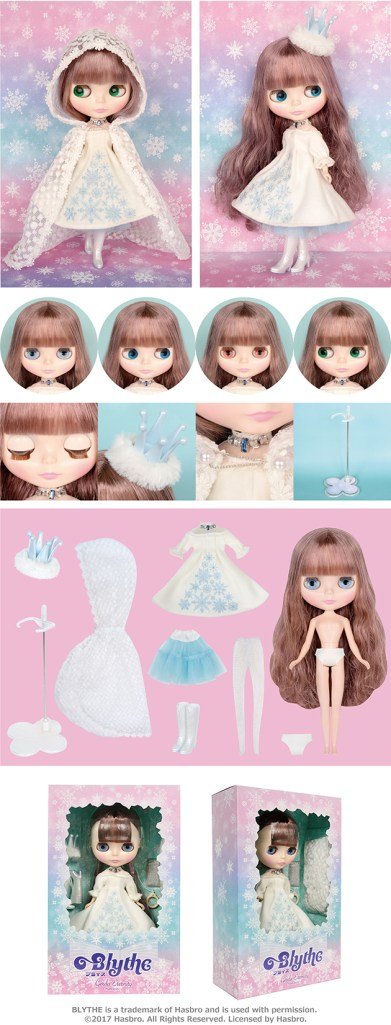 Set Includes: Doll, dress, underskirt, head accessories (tiara, corolla), ear rings(flower,ribbon), shorts, shoes, stand (12cm tall)