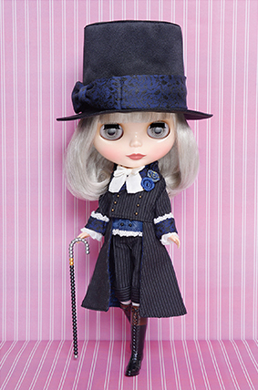 Set Includes: Doll, shirt, vest, cummerbund, coat, pants, hat, walking stick, socks, shoes, shorts, and stand