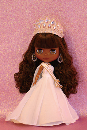 Set includes: doll, dress, long camisole, head accessory, earrings, shorts, tights, shoes, stand