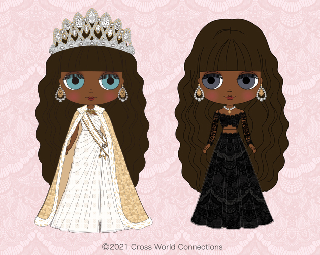 Set Includes: Doll, White dress (inner and outer dress), black dress (bustier and skirt), cape, petticoat, tasuki, stockings, shorts crown, earrings necklace, shoes, card and short stand for dress14.5cm).