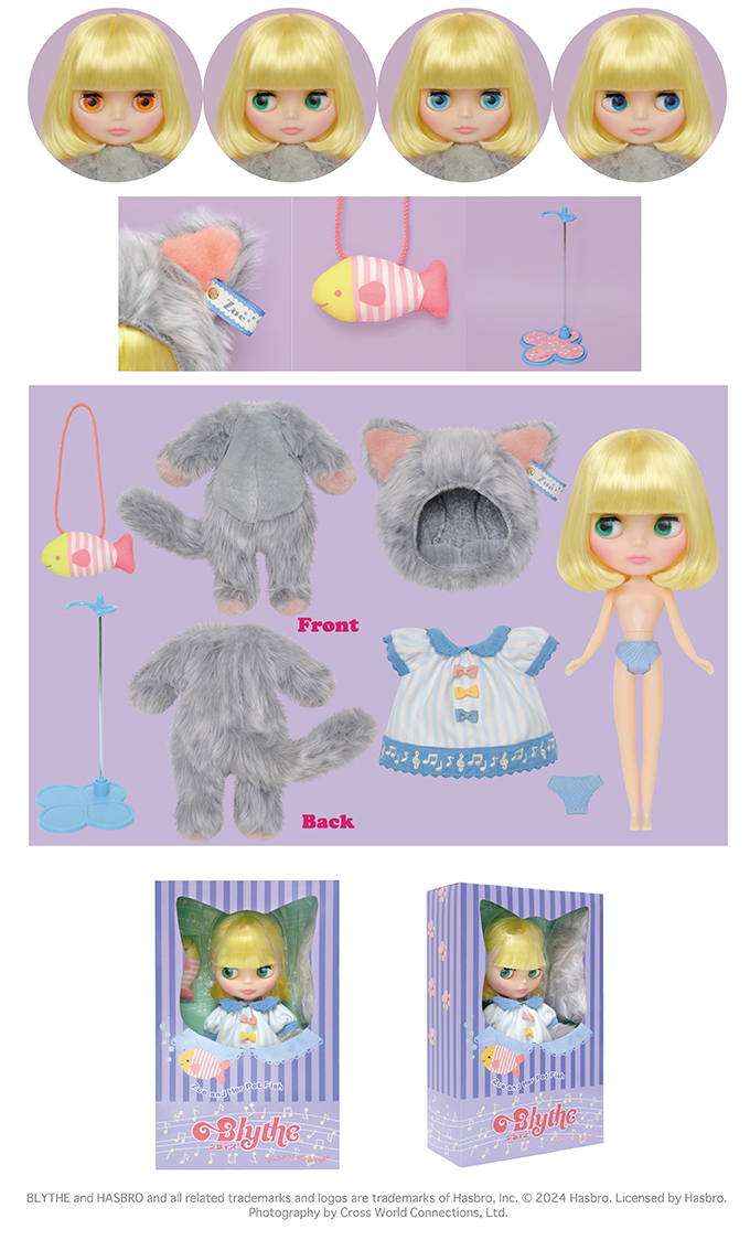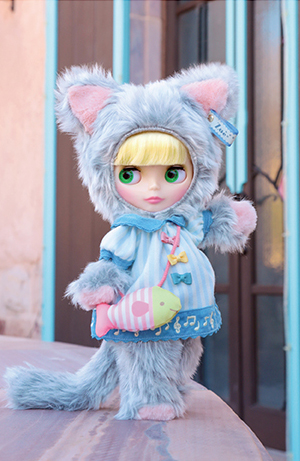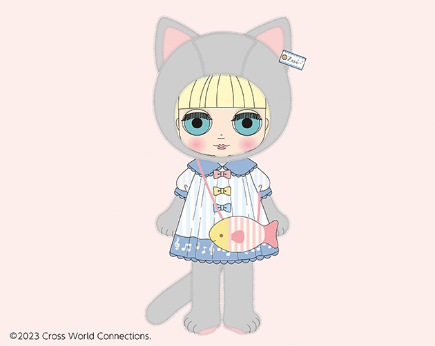 [Set includes] Doll, cat cap, cat costume, dress, pochette, shorts, and stand.