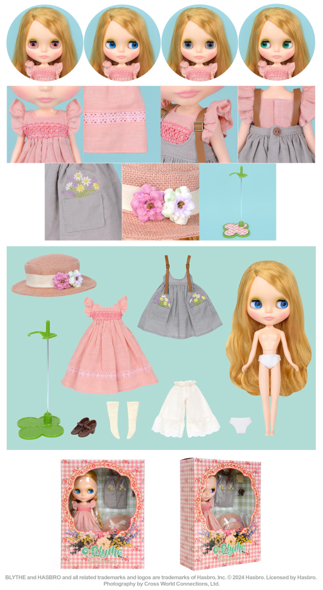 Set Contents: Doll, dress, apron, hat, pettipants, shorts, socks, shoes, stand (waist restrainer)