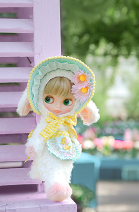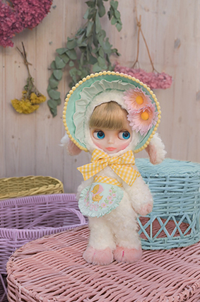 Una is a cute little lamb Blythe who looks adorable in her fluffy costume. She’s always together with her friend Dot!